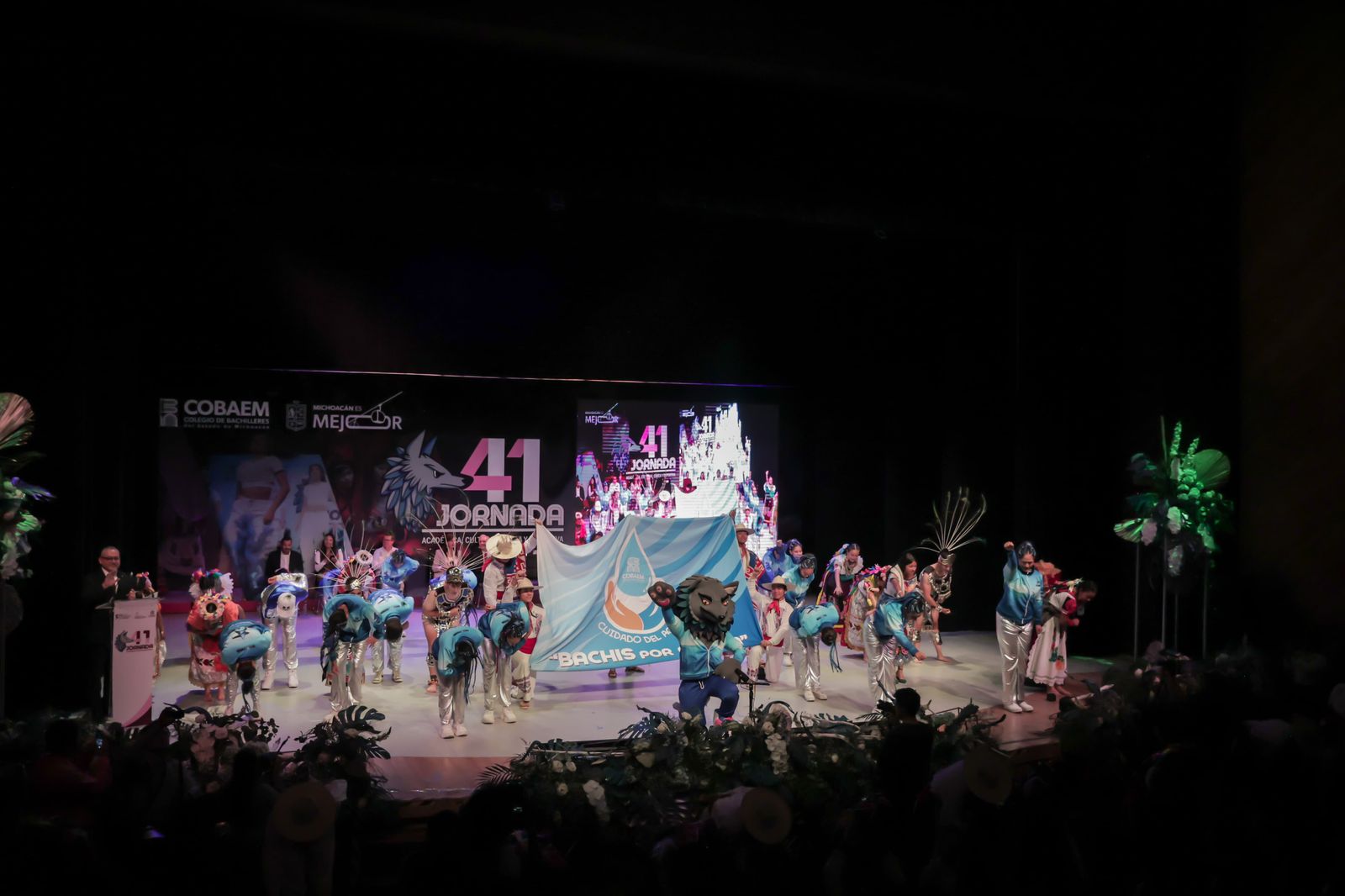 Bajo los lemas “Aguas con el agua”, “Somos Coabem” y “Somos bachis por el agua”, los estudiantes de los planteles Los Reyes, Ario de Rosales y Ocumicho presentaron un espectáculo artístico, como un llamado para valorar, cuidar y hacer un uso responsable del agua.