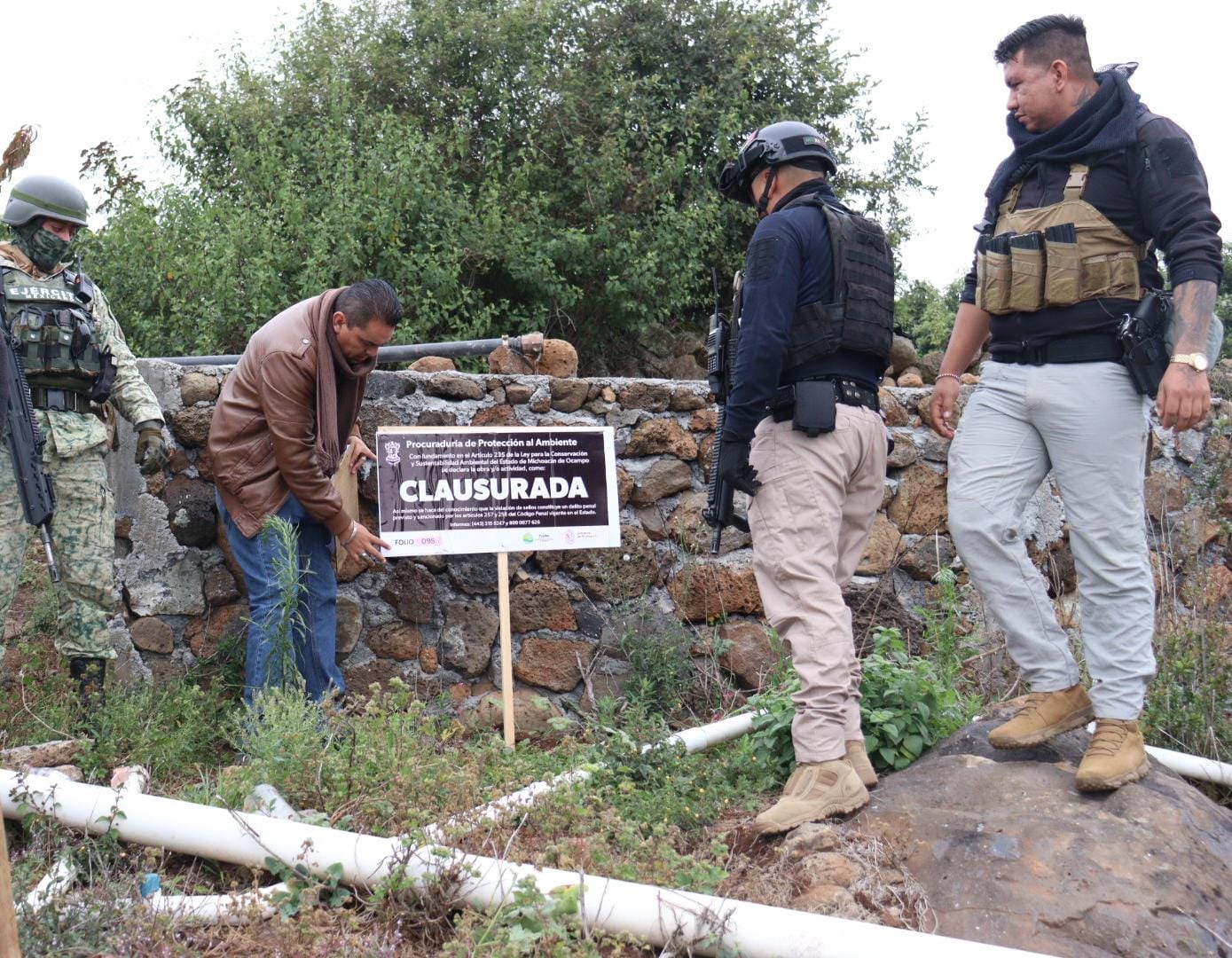 Inspectores de la Proam, acompañados por elementos de la Secretaría de la Defensa Nacional (Sedena), Guardia Civil y Guardia Nacional, realizaron un recorrido en la zona, en donde detectaron ocho ollas utilizadas para el riego de cultivos, principalmente de aguacate, las cuales fueron clausuradas por esta autoridad.