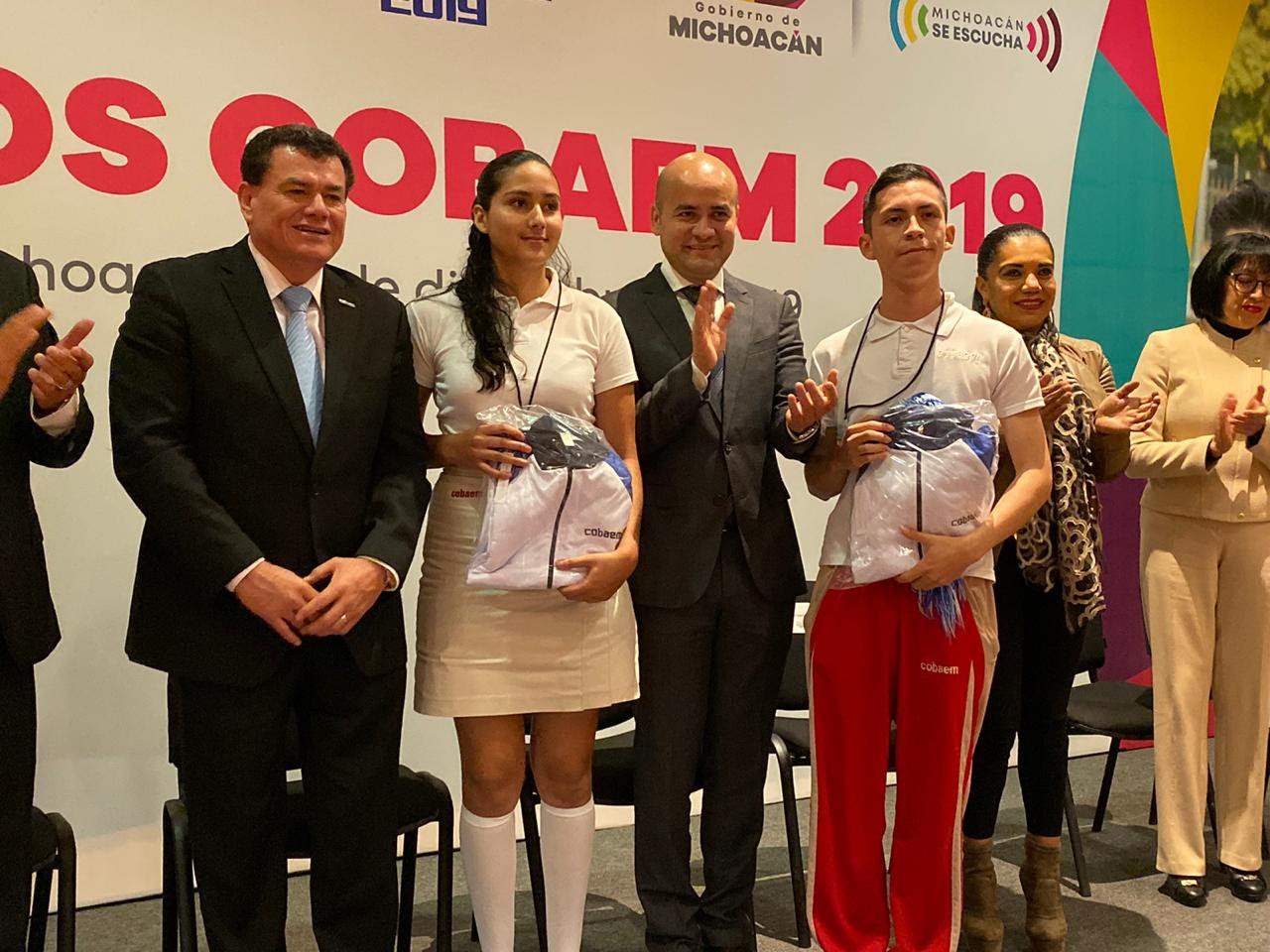 Morelia, Michoacán a 4 de diciembre de 2019.- Como una manera de reconocer las mejores prácticas formativas de las y los estudiantes que mantienen excelente nivel de aprovechamiento y han puesto en alto a Michoacán, haciendo que se escuche a nivel nacional e internacional, se hizo entrega de apoyos e incentivos para Talentos Cobaem 2019.