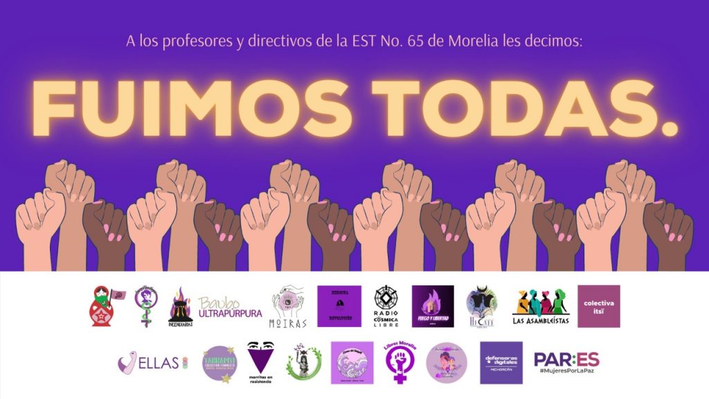 Los profesores de la EST 65 de Morelia interponen denuncia «contra quien resulte responsable» por supuesto desprestigio en redes sociales. Las feministas de Michoacán les decimos: FUIMOS TODAS. Las y los estudiantes no están solxs. #FuimosTodas