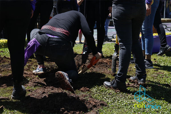 Así mismo se dieron a la tarea de realizar una perforación en el jardín para poder colocar una Antimonumenta con la frase «VIVAS, LIBRE Y FELICES», misma que quedó bien cimentada, pues fue reforzada con una mezcla de cemento que garantizará su firmeza.