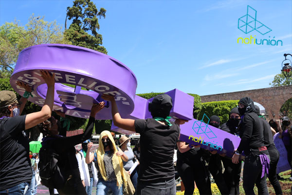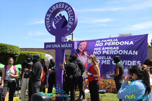 Morelia, Michoacán a 08 de marzo del 2021.- La mañana de este lunes el Colectivo Feminista Asamblea de Mujeres Michoacán convocó a la ciudadanía en general a unirse al Mitin como medio de protesta que se realizó a las 11:00 horas en el monumento a las Tarascas en la ciudad de Morelia con motivo de Día Internacional de la Mujer.