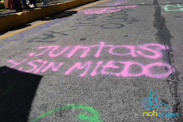 Durante el mitin no se realizaron afectaciones a ningún monumento o pared, en esta ocasión la carpeta asfáltica sirvió como escenario para colocar diversas consignas donde expresaban el motivo de la lucha, así como recordar a mujeres que hoy en día no han logrado obtener justicia.