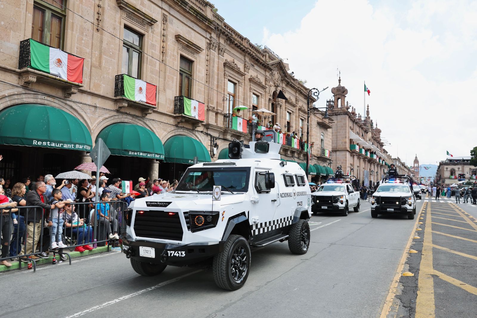 Al comandante del 12 Batallón de Infantería, Demian Yamil Mayoral Ojeda, le correspondió dar el parte de quienes intervinieron en el desfile, entre ellos una bandera de guerra, 108 banderas de diferentes instituciones, 169 integrantes del Ejército y Guardia Nacional, 261 integrantes de la Fiscalía, 918 de los cuerpos de seguridad y del municipio de Morelia, 381 elementos de Protección Civil y grupos de emergencia, 4 mil 661 estudiantes y personal de planteles educativos, 415 jinetes y equinos, 150 vehículos, 57 motocicletas, una embarcación, 33 bicicletas y 16 caninos.