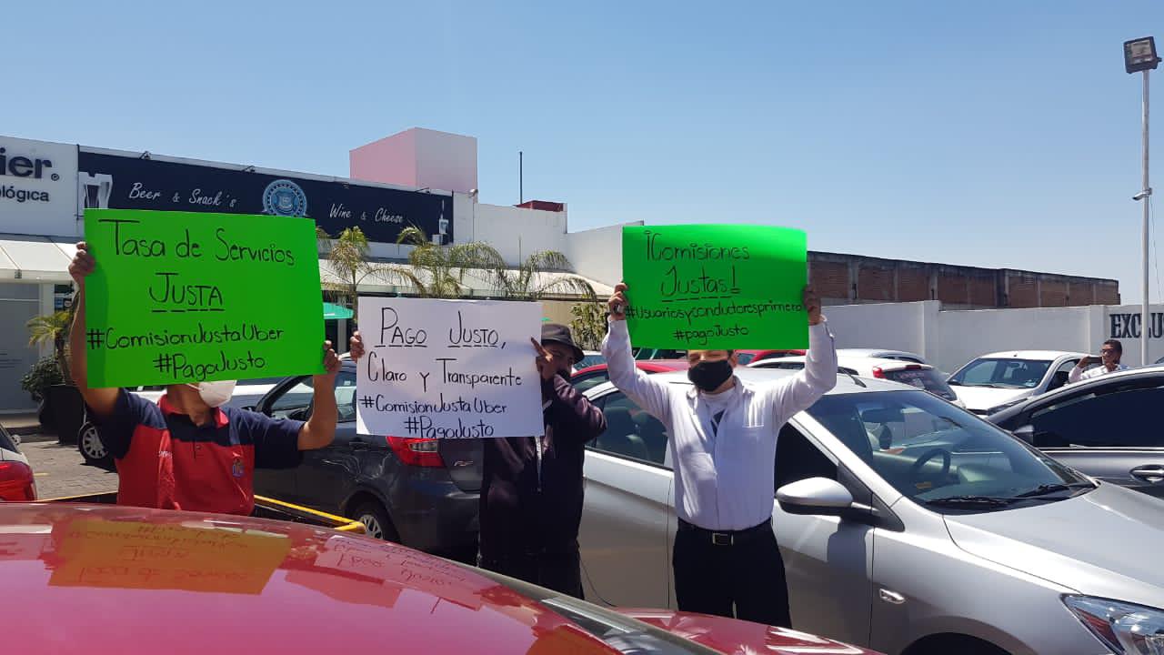 Morelia, Michoacán a 24 de marzo del 2021.- Este miércoles socios conductores y conductores de la plataforma digital Uber, arribaron a las oficinas centrales a manifestar su inconformidad con las comisiones e impuestos que se les cobran, aseguran que no es lo justo para ellos.