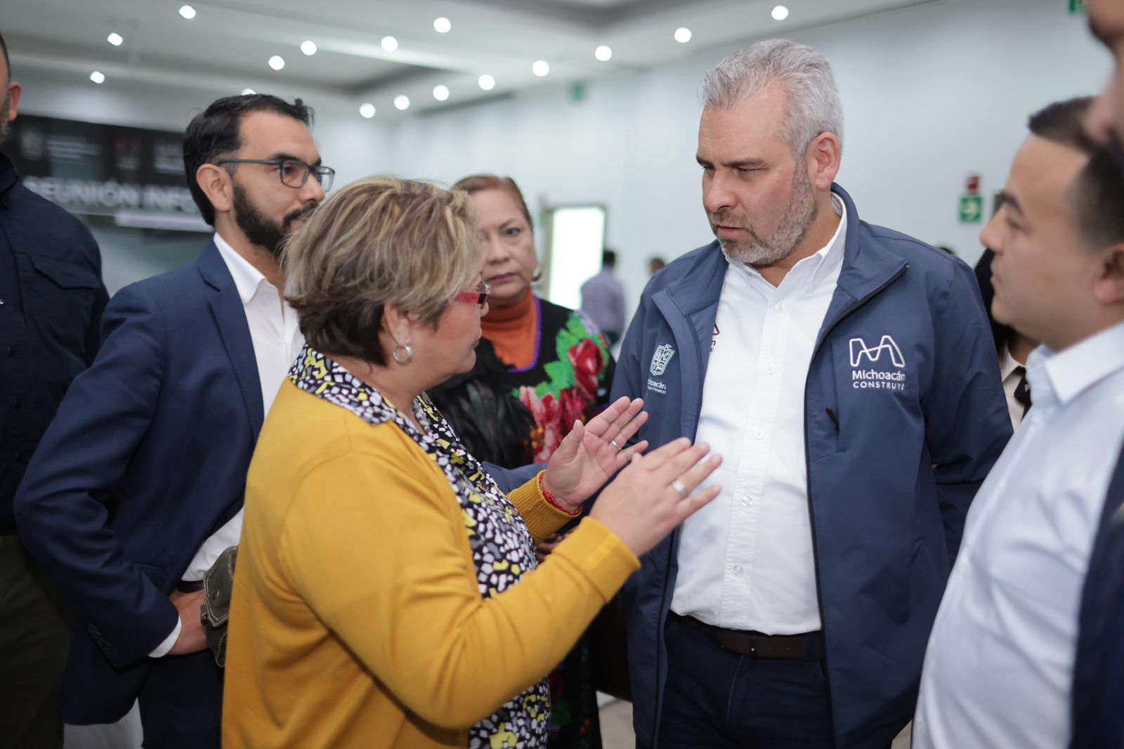 Uruapan, Michoacán, 3 de enero de 2024.- El gobernador Alfredo Ramírez Bedolla, sostuvo reunión con representantes de los sectores empresarial, transportista, turístico y comercio de Uruapan para informar avances de infraestructura para el desarrollo turístico y económico de la región.
