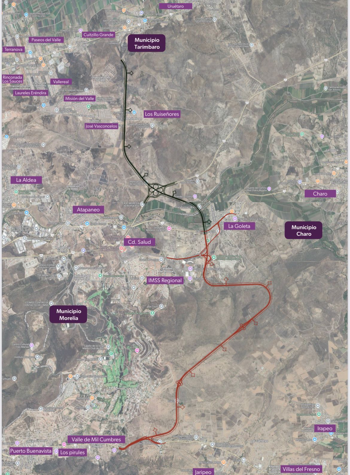 El gobernador adelantó que las colonias y localidades beneficiadas con esta obra que potenciará el desarrollo y mejorará la seguridad vial de la zona metropolitana de Morelia son: