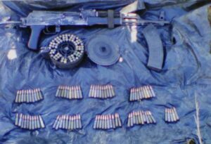 Posterior a los trabajos operativos realizados tras la localización de un campamento clandestino en la localidad de Las Playitas, fue encontrada un arma tipo AK47 y dos cargadores.