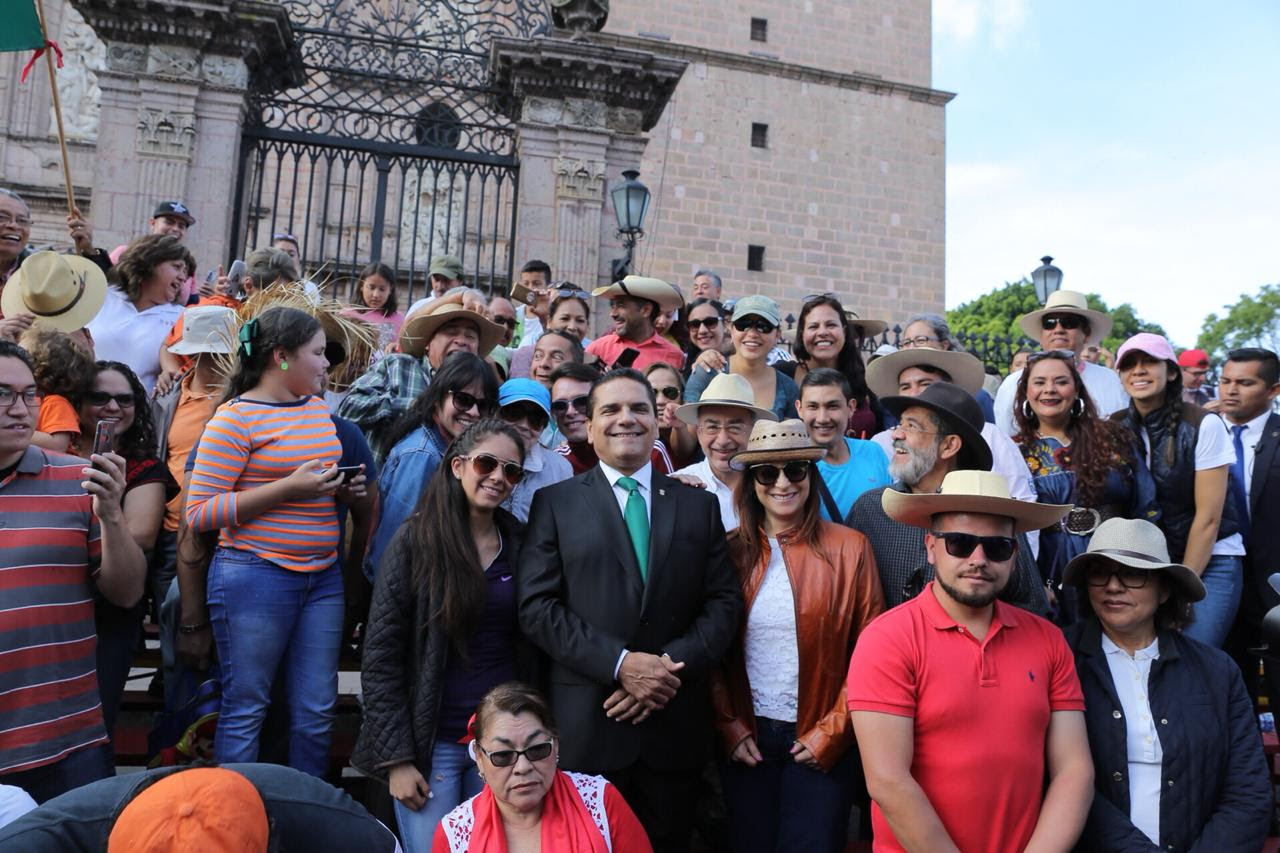 Morelia, Michoacán, a 16 de septiembre de 2018.- En un ambiente cálido, familiar y alegre, el Gobernador Constitucional, Silvano Aureoles Conejo recorrió a pie la Avenida Madero, previo al Desfile Cívico Militar; ahí aprovechó para saludar, convivir y platicar con cientos de ciudadanos y ciudadanas que ya se encuentran congregados en el primer cuadro de la ciudad.