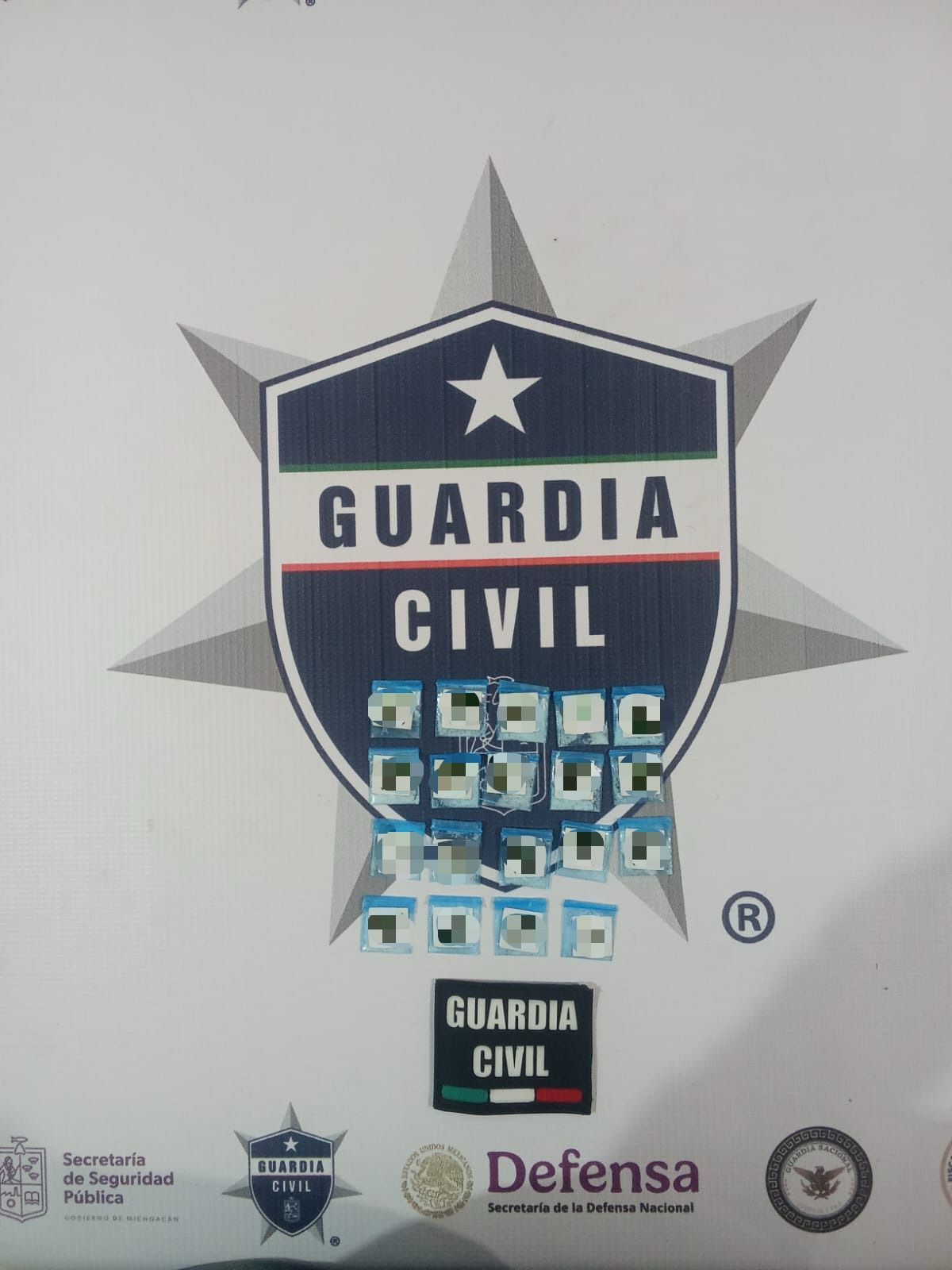 En un primer operativo, realizado en el municipio de Erongarícuaro, agentes de la Guardia Civil y de la GN detuvieron a un hombre que portaba 20 envoltorios con una sustancia granulosa con las características propias de la metanfetamina.