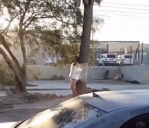 La víctima estaba sujetada con plástico adherible desde las piernas hasta el cuello, impidiéndole moverse. La escena fue grabada por un joven y por automovilistas que transitaban por la zona, cuyos videos comenzaron a circular en redes sociales durante la mañana siguiente.
