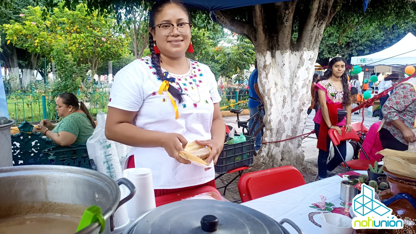 Maria Isabel Esquivias prepara unos deliciosos tamales y atole de pulque y son ofertados por la cantidad de $15 pesos. Para María preparar estos tamales representa una tradición familiar y resaltar las tradiciones de su comunidad.