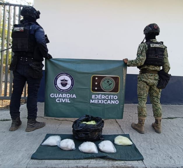 El aseguramiento de la droga se realizó en la localidad de Los Pozos, donde los agentes del Ejército Mexicano y la Guardia Civil patrullaban en una brecha de terracería, donde ubicaron las dos camionetas, una de la marca Chevrolet y otra Mitsubishi en las cuales al interior fueron encontradas diversas bolsas plásticas con el citado enervante.