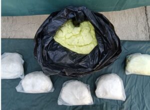 Parácuaro, Michoacán, 21 de mayo del 2025.- En una acción operativa interinstitucional, personal de las secretarías de Seguridad Pública (SSP) y de la Defensa Nacional (Defensa) decomisaron 21 kilogramos de sustancia granulada con las características propias de la metanfetamina, dentro de dos vehículos con reporte de robo.