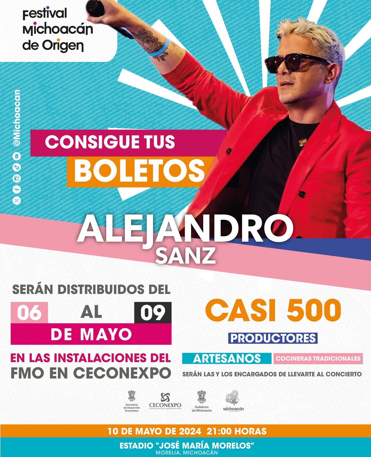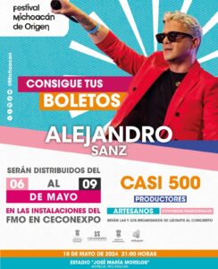 Morelia, Michoacán, 4 de mayo de 2024.- Alejandro Sanz llega este 2024 al Festival Michoacán de Origen (FMO) en una fecha emblemática para todos los mexicanos: el 10 de mayo.