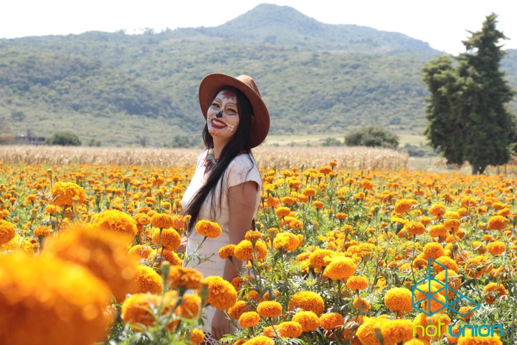 Copándaro de Galeana, Michoacán a 17 de octubre del 2022.- La celebración del Día de Muertos esta a la vuelta de la esquina y los campos de la emblemática y tradicional flor de cempasúchil ya están más que listos para adornar las ofrendas, los arcos y las tumbas que darán la bienvenida a nuestros fieles difuntos.