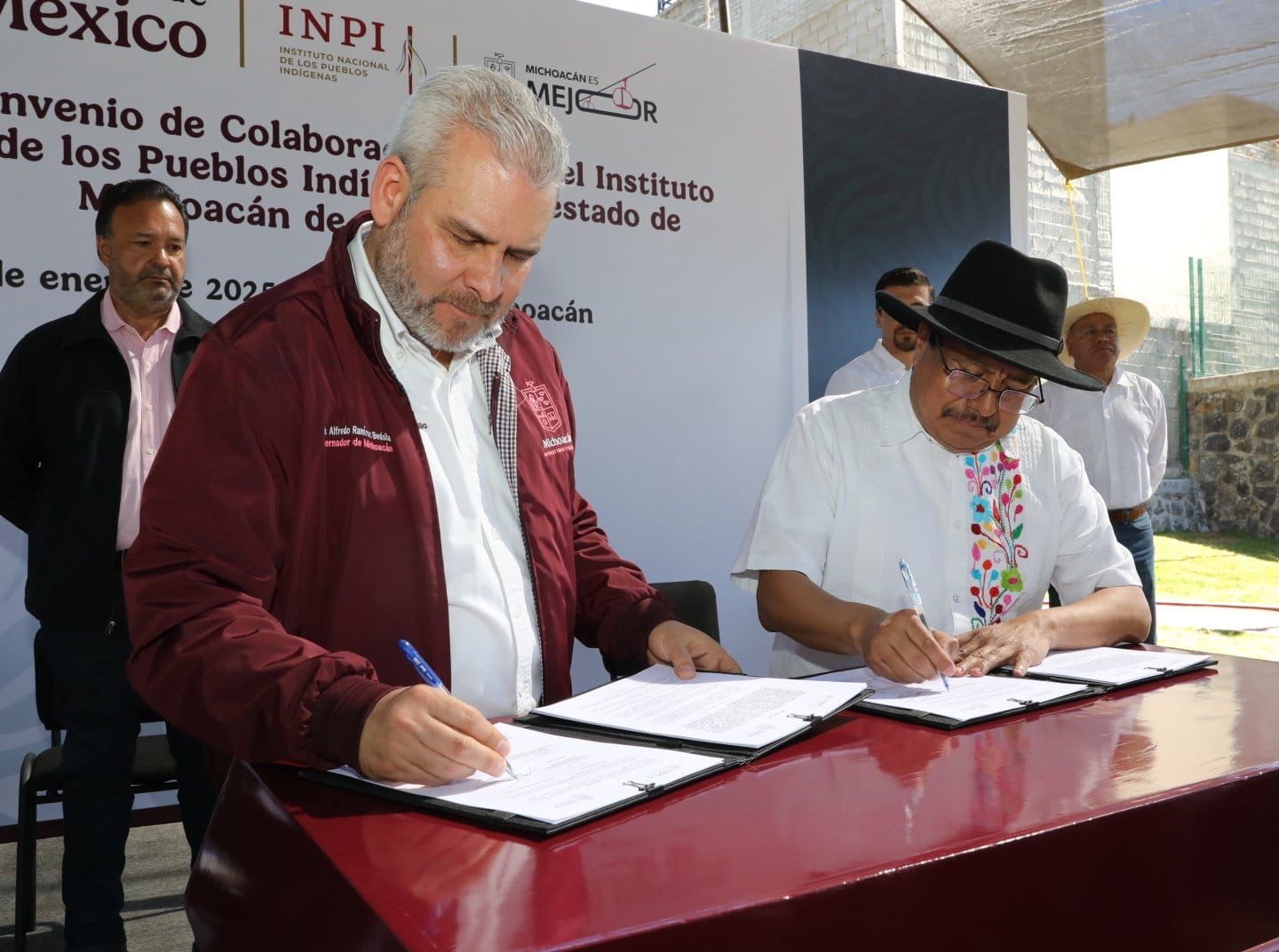 En este punto coincidieron el gobernador Alfredo Ramírez Bedolla y el director del Instituto Nacional de Pueblos Indígenas (INPI), Adelfo Regino Montes, en el acto de la firma del primer convenio a nivel país para implementar el Plan Nacional de Desarrollo en favor de los pueblos originarios de Michoacán.