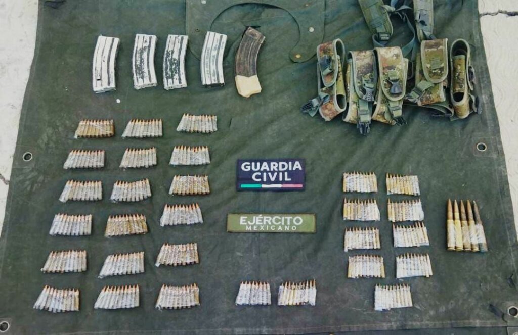 De igual forma en la localidad de Llano Grande de esta misma demarcación, fueron encontrados y asegurados en aparente estado de abandono cinco cargadores y 293 cartuchos útiles de diversos calibres; mismos que fueron asegurados y puestos a disposición de las autoridades competentes.