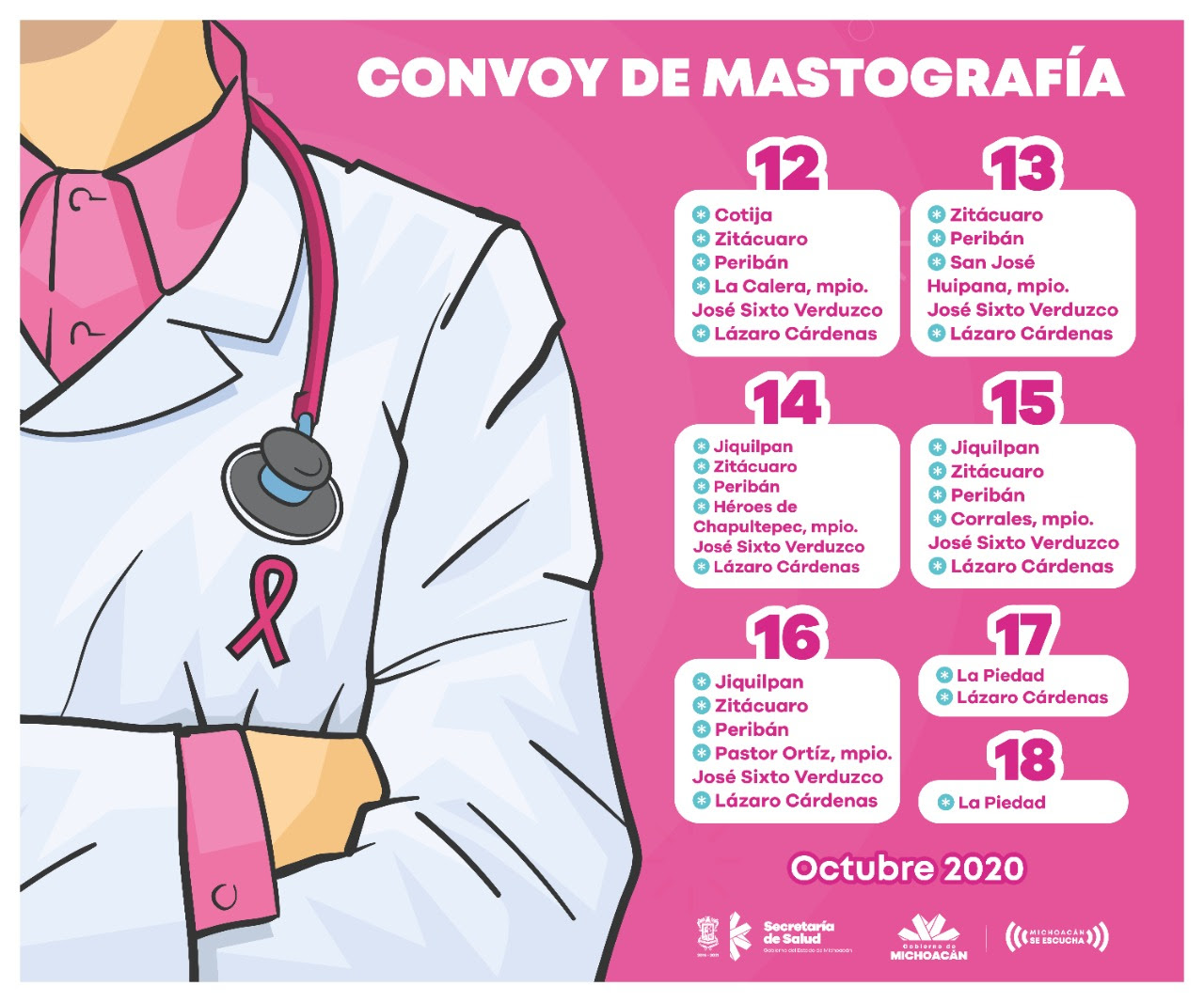 Morelia, Michoacán, a 11 de octubre de 2020.- La Secretaría de Salud de Michoacán (SSM), desplegará del 12 al 18 de octubre unidades móviles de mastografía en beneficio de las mujeres de comunidades indígenas o de difícil acceso.