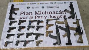Morelia, Michoacán, 13 de enero de 2026.- Resultado del operativo interestatal y del reforzamiento a las acciones para la disuasión del delito entre Michoacán y Guanajuato, en la zona limítrofe entre ambas entidades se realizó el aseguramiento de un hombre y un menor de edad en posesión de 24 armas de fuego.