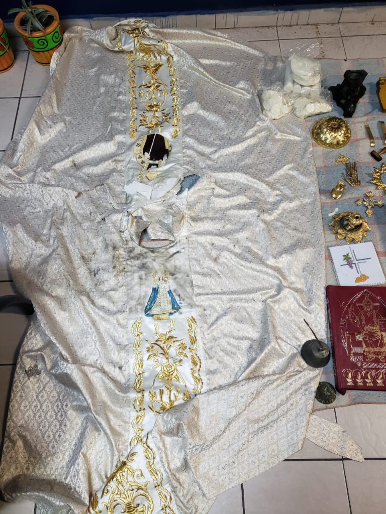Zitácuaro, Michoacán, a 15 de abril de 2020.- La Fiscalía General del Estado de Michoacán (FGE), en coordinación con Seguridad Pública del municipio de Hidalgo, detuvieron a una persona del sexo masculino, en posesión de varios objetos religiosos que fueron robados el pasado 4 de abril, en una parroquia de Ciudad Hidalgo.
