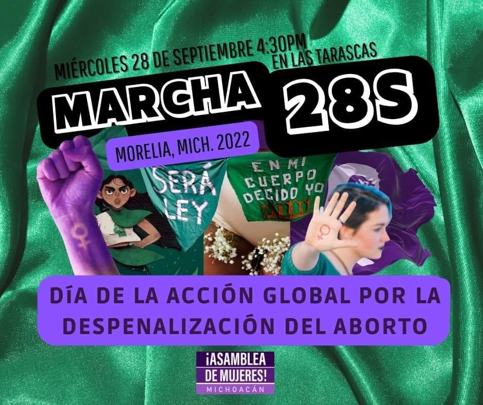 Morelia, Michoacán a 28 de septiembre del 2022.- Esta tarde mujeres, niñas y adolescentes michoacanas saldrán a las calles del cuadro principal de la capital michoacana para marchar a favor de la legalización y despenalización del aborto, exigiendo a los diputados locales legislar a favor del mismo.