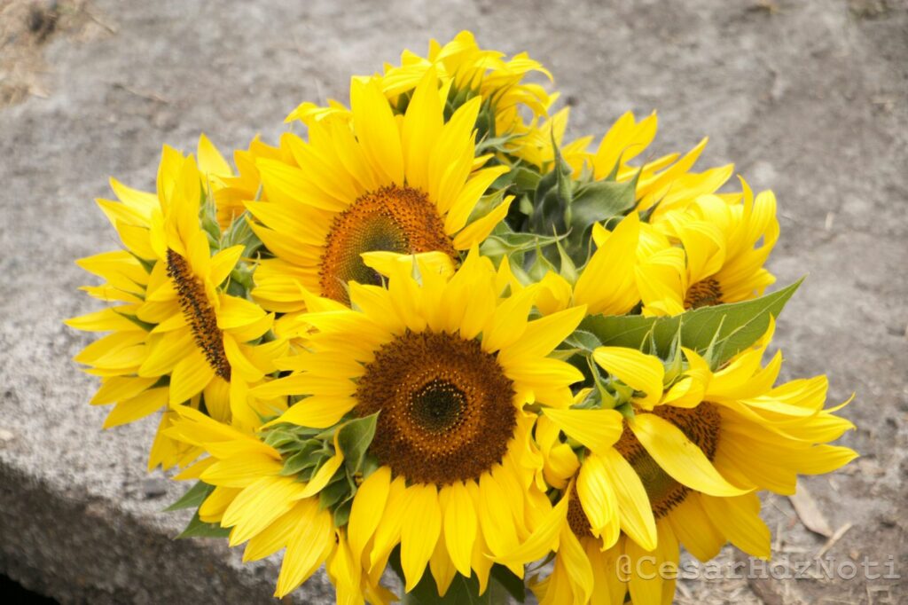 Don Layo cultiva girasoles gigantes amarillos, pero también hay de color negro y güindas, a precios muy accesibles, en donde puedes adquirir desde uno, hasta docenas.
