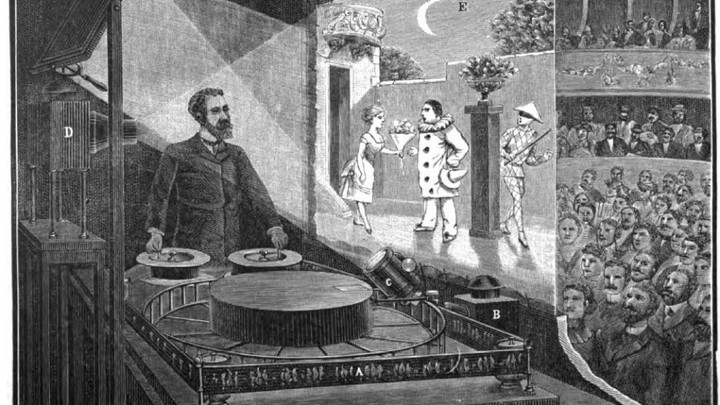 El 28 de octubre de 1892, Reynaud presentó su Théâtre Optique, un sistema de lentes y espejos que proyectaba imágenes animadas sincronizadas con música y efectos sonoros. Durante la exhibición, conocida como Pantomimas Luminosas, se proyectaron títulos como Pauvre Pierrot, Clown et ses chiens y Un bon bock.