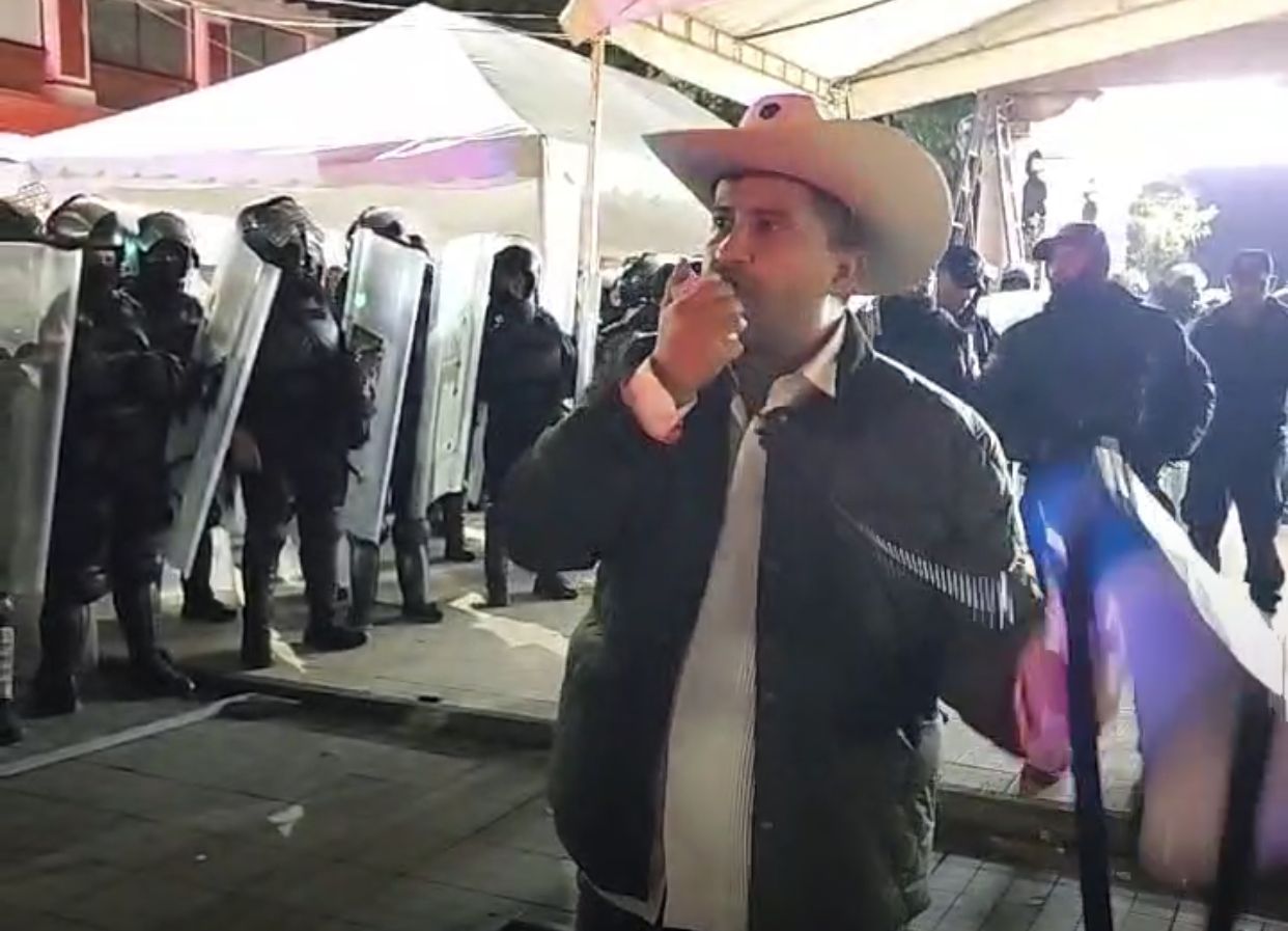 “No es una plaza del gobernador, ni del presidente municipal, es una plaza pública, entiéndalo, donde todos tienen derecho”, manifestó el legislador federal, dirigiéndose a los elementos antimotines que ya los rodeaban.