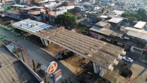 Zarazúa Sánchez detalló que la obra cuenta con 150 trabajadores en sitio, distribuidos en tres turnos. Las labores actuales incluyen la colocación de ductería de media tensión, la nivelación y compactación de rellenos a nivel de subrasante, y la instalación de muros mecánicamente estabilizados en armados de losa. En cuanto a la estructura principal, se lleva a cabo el montaje nocturno de 24 de las 36 trabes metálicas totales, una medida implementada para disminuir la afectación vial en la zona.