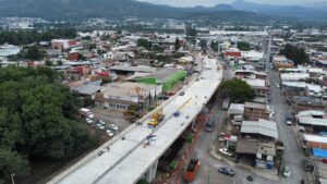 El funcionario estatal detalló que la obra se encuentra en la etapa final, se están concluyendo detalles en el colado de losas de superestructura, colocación de barreras, parapetos y luminarias en las rampas norte y sur, así como trabajos de conformación del skatepark y el bajopuente.