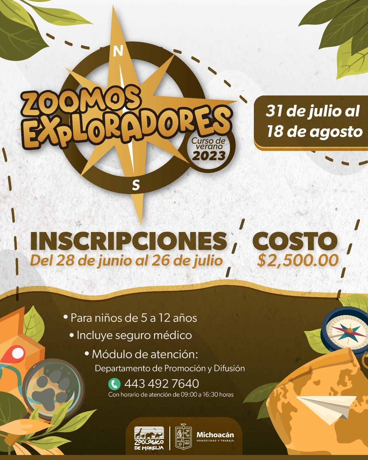 Morelia, Michoacán, a 30 de junio de 2023.-Del 31 de julio al 18 de agosto, el Zoológico de Morelia invitará a todos los pequeños exploradores a disfrutar de unas únicas vacaciones en su tradicional curso de verano. Bajo el nombre “Zoomos Exploradores”.