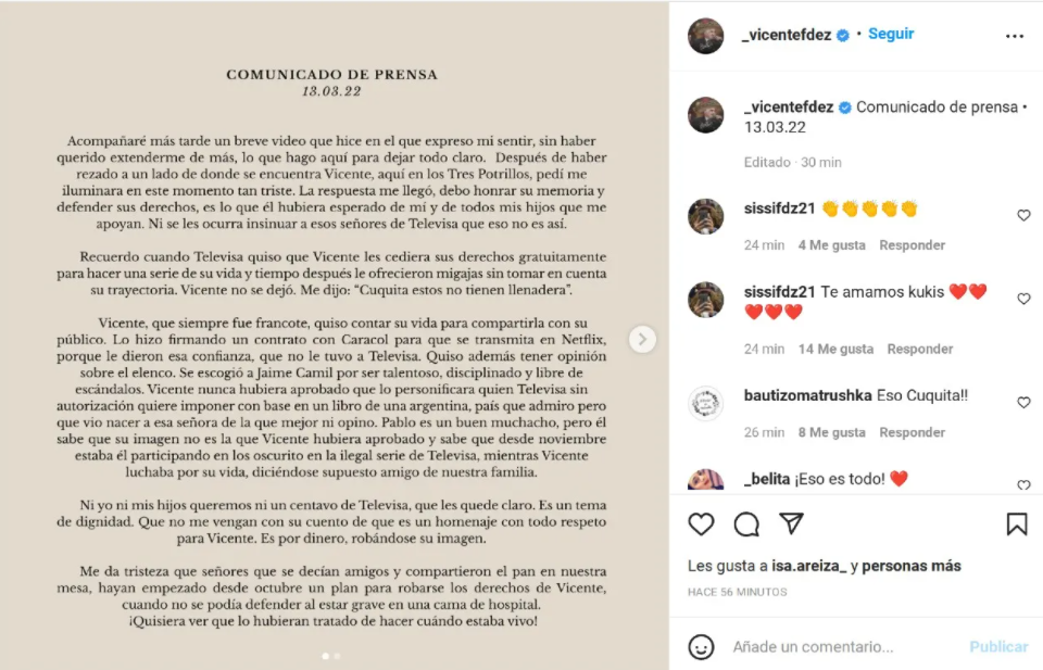 La familia Fernández estuvieron buscando la forma de cancelarla, ahora lega un comunicado de la Dinastía más especifico de viuda de Vicente.