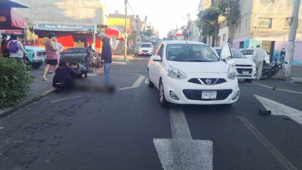 El primer incidente ocurrió alrededor de las 08:00 horas sobre la calle Lacas de Uruapan, donde un automóvil Nissan March, color blanco, impactó a una motocicleta.
