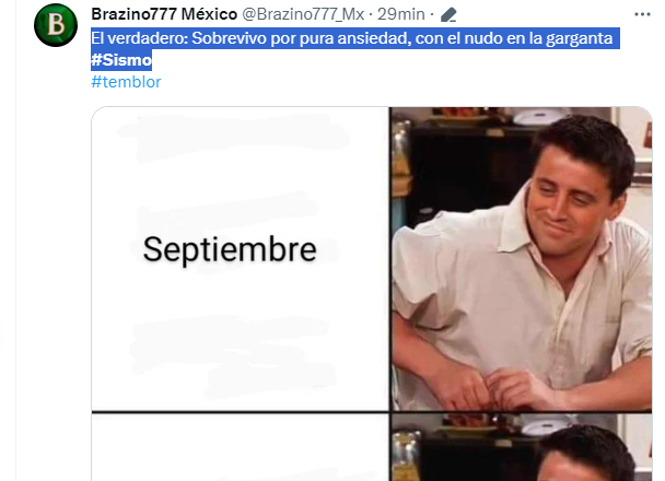 Ya en redes sociales existen varias imágenes y se ha vuelto tendencia este sismo, ya que los mexicanos tenemos esa experiencia de que en septiembre se vienen los sismos en el país.