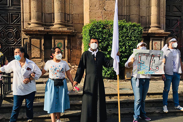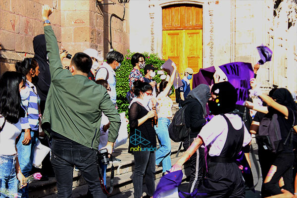 El suceso se llevó a cabo en la parte de afuera del templo conocido como «Las Monjas» sobre la avenida Francisco I. Madero, mismo que se encontraba resguardado por una cadena humana de manifestantes católicos a en contra de aborto, quienes sostenían rosarios mientras rezaban el «Padre Nuestro» y «Ave María».