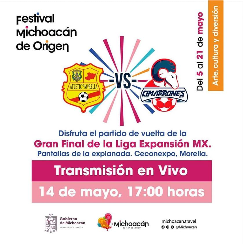 Morelia, Michoacán a 14 de mayo de 2022.- Si no alcanzaste boletos para el partido de la final del Club Atlético Morelia, que jugaran el día de hoy 14 de mayo contra los Cimarrones de Sonora en punto de las 17:00 horas.