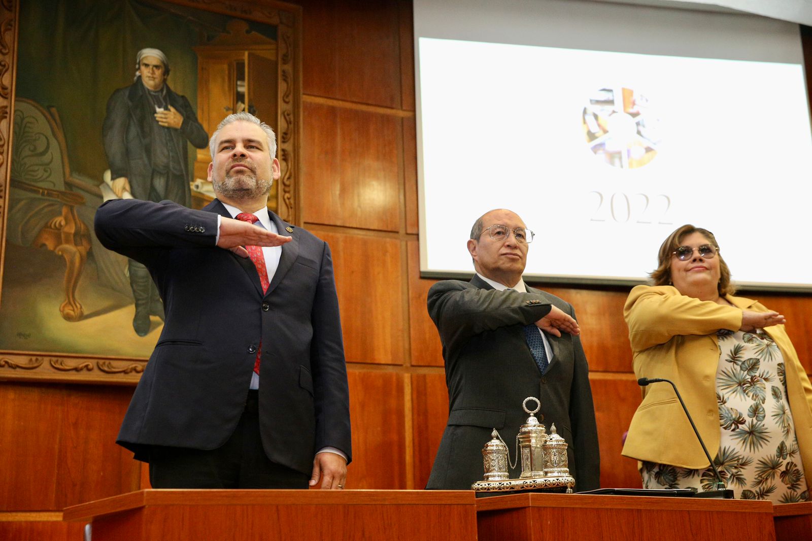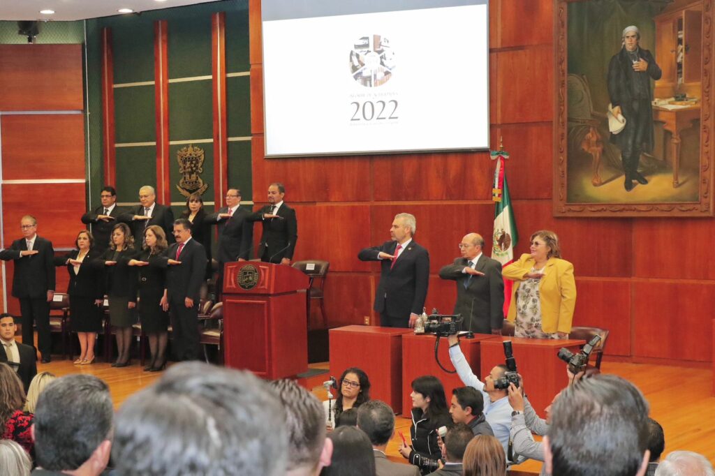 Asistieron también la presidenta honoraria del sistema DIF estatal, Grisel Tello Pimentel; la presidenta de la mesa directiva del Congreso del Estado, Julieta García Zepeda; el secretario de Finanzas, Luis Navarro García; el fiscal Adrián López Solís; así como magistrados, jueces y consejeros.