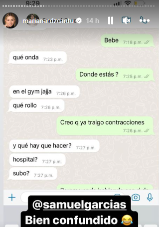 Así es, ayer jueves la influencer comunicó a su doctor y a su esposo que ya comenzaban las contracciones al sentir «La panza dura», así lo dejó ver con unas capturas de mensajes en sus historias de Instagram.