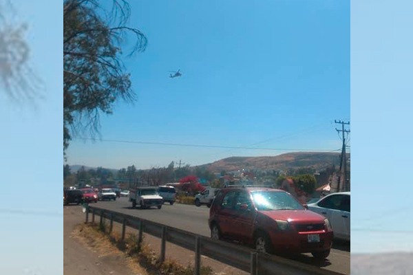 helicóptero sobrevolando a la altura del Trébol en el municipio de Tarímbaro. Foto: Cortesía