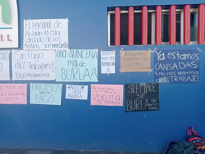 Las trabajadoras denunciaron que en varias ocasiones se les han retrasado las quincenas, y que la administración no da la cara para resolver el problema.