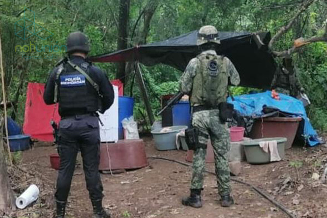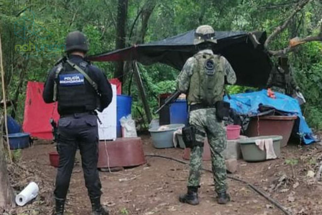 Carácuaro, Michoacán, a 28 de Septiembre de 2020.- Resultado de labores implementadas para garantizar el bienestar de la sociedad, elementos de las secretarías de Seguridad Pública (SSP), y de la Defensa Nacional (SEDENA), el pasado 26 de septiembre desmantelaron un laboratorio utilizado para la elaboración de droga sintética, en este municipio.