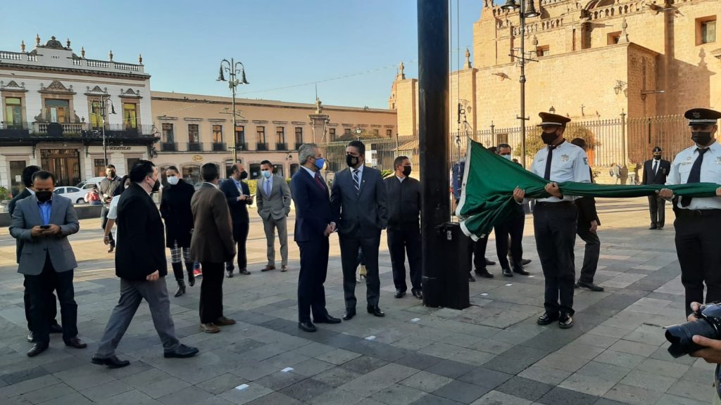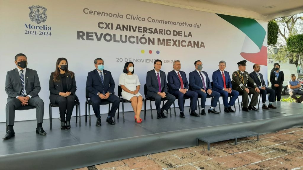 Fue el gobernador del estado, Alfredo Ramírez Bedolla quien estuvo presente en el izamiento del la bandera, además del alcalde Alfonso Martínez Alcázar, quienes enviaron un mensaje a la saciedad civil para pedirles recodar el movimiento revolucionario y sentirse orgullosos de su tierra.