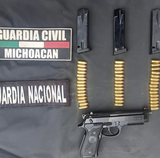 Los guardias civiles y nacionales les dieron alcance y les solicitaron una revisión, en la cual les fue localizada un arma de fuego tipo corta, calibre .9mm con 44 municiones y tres cargadores. Junto a lo decomisado, los ahora indiciados fueron puestos a disposición de la autoridad competente.
