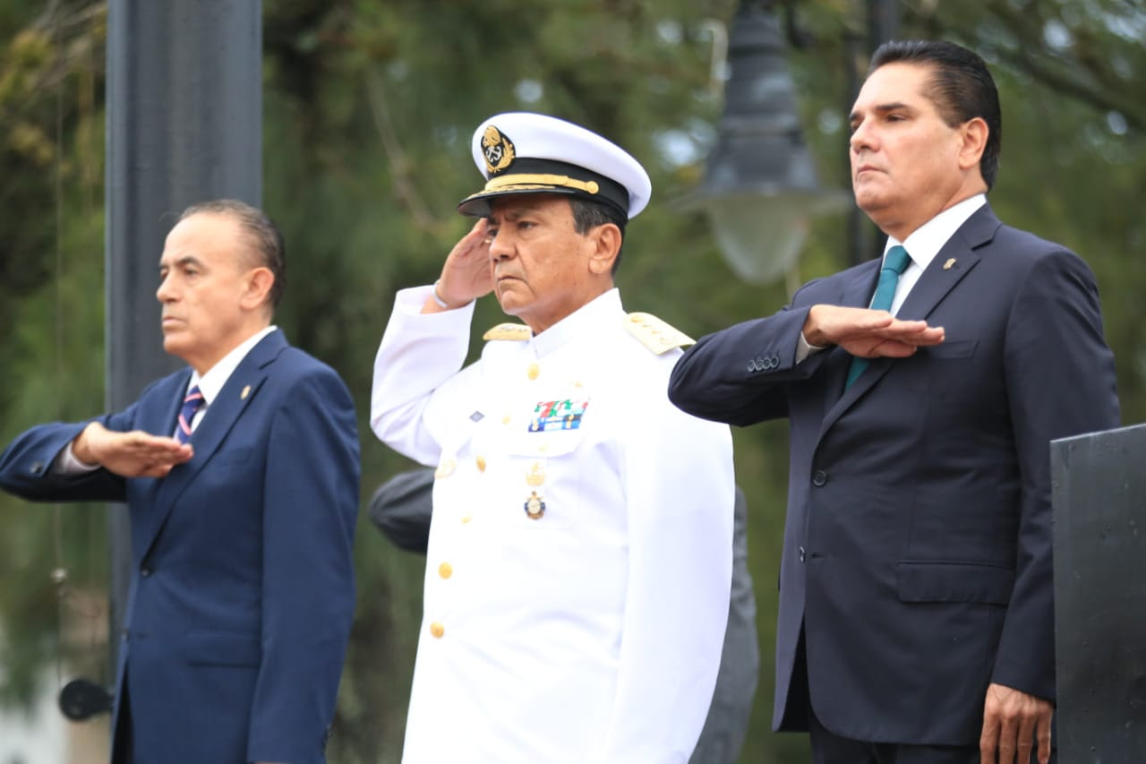 Los eventos conmemorativos dieron inicio en la Plaza Jardín Morelos, donde el titular del Ejecutivo Estatal, en compañía de quienes encabezan los Poderes Legislativo y Judicial, así como integrantes de su Gabinete y del Ayuntamiento capitalino, izó la Bandera Nacional, la Bandera que contiene el Escudo de Armas de Michoacán, y la Bandera de Morelia.