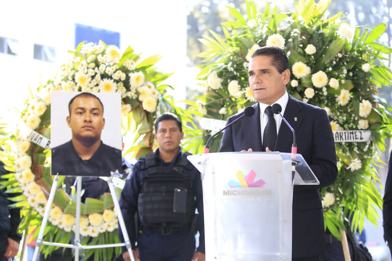 «Lamentamos esta pérdida que es de todos. Hoy más que nunca los llamo a hacer un frente ante estos sucesos, que pongamos la mira en formar en Michoacán la mejor policía de México, para brindar así seguridad a las y los michoacanos», apuntó Aureoles Conejo.