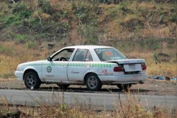 De acuerdo con el reporte, aproximadamente a las 11:00 horas de este día se recibió el reporte de la localización del taxi abandonado a un costado de la carretera a la comunidad de La Estancia de Amezcua y El Espíritu, a unos metros del libramiento Norte.