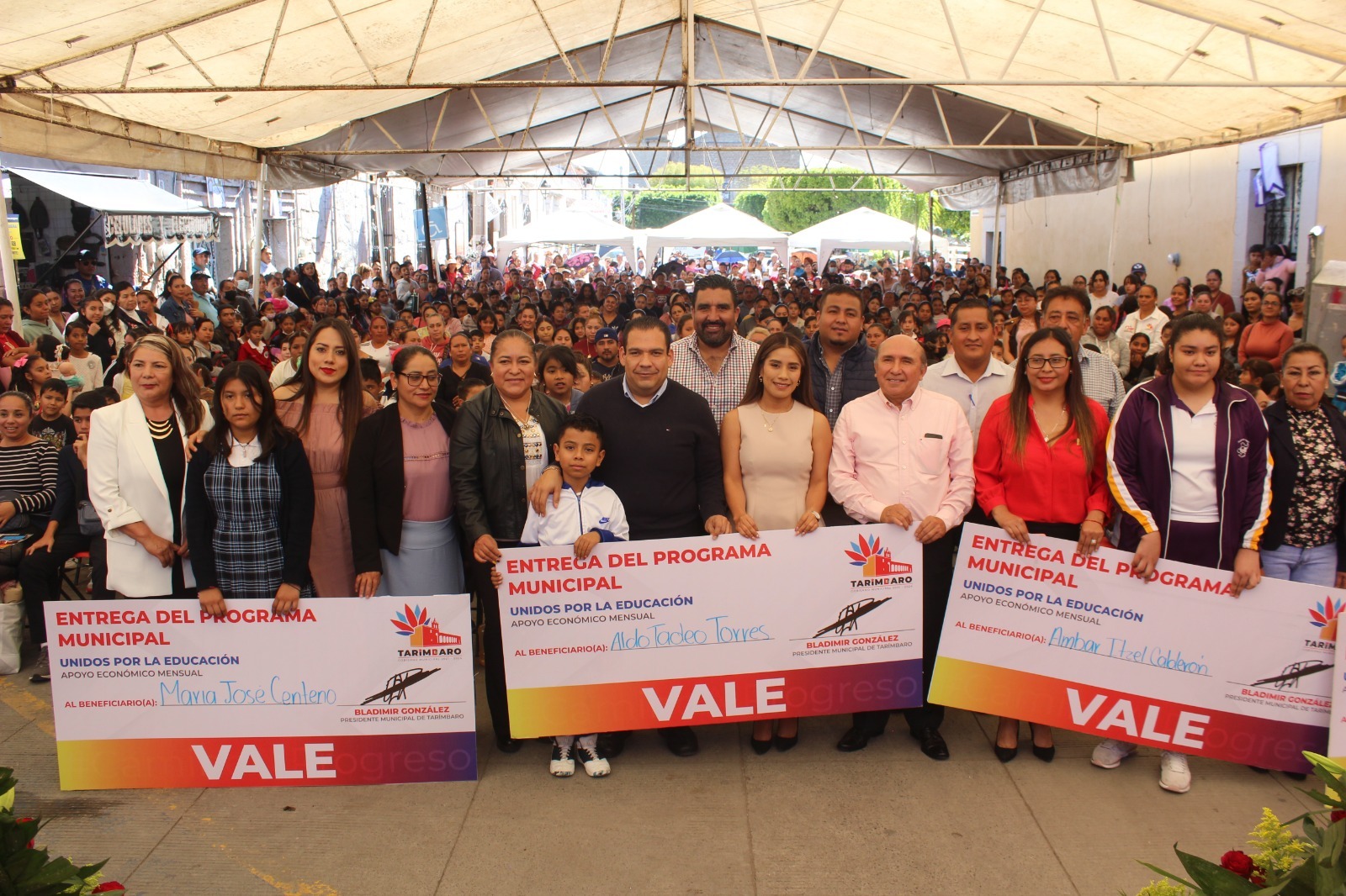 En un evento encabezado por el presidente municipal, Bladimir González, y la presidenta honoraria del DIF Tarímbaro, Aylin Solórzano, se entregaron los primeros apoyos económicos a los beneficiarios del programa municipal Unidos por la Educación.