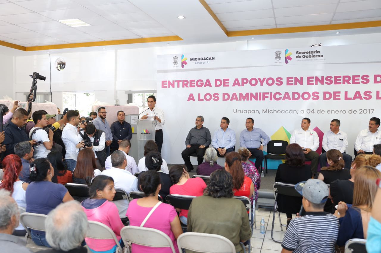 Con el compromiso de generar las condiciones de bienestar a la ciudadanía y resolver las necesidades básicas, este miércoles el Gobernador Constitucional, Silvano Aureoles Conejo, entregó enseres domésticos a familias que resultaron afectadas por las inundaciones y deslaves que se registraron en la pasada temporada de lluvias.