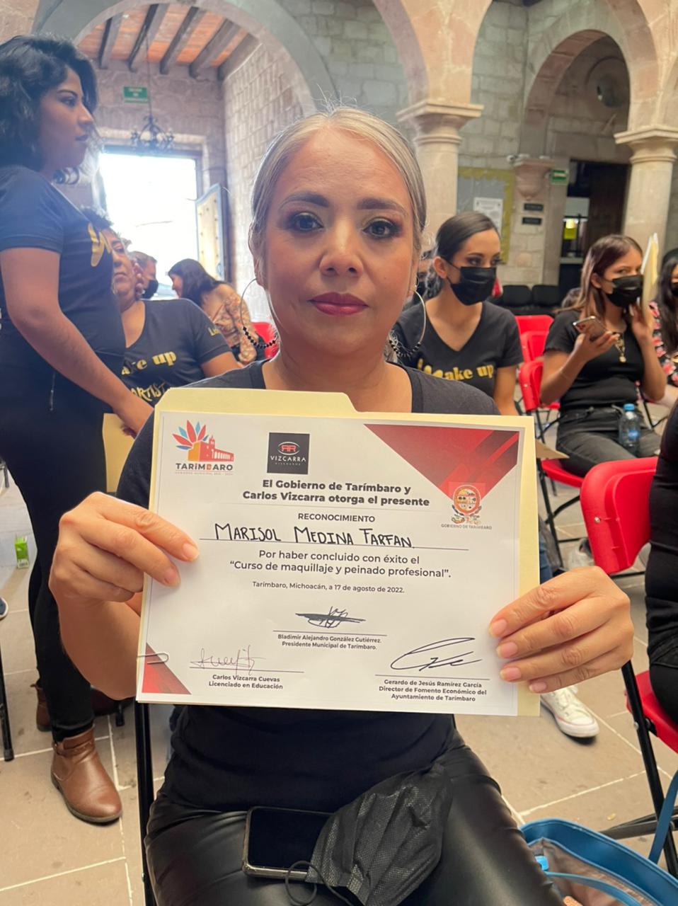 Tarímbaro, Michoacán, a 17 de agosto de 2022.- El Gobierno de Tarímbaro entregó los reconocimientos a las y los tarimbarenses que culminaron el curso de maquillaje y peinado, mismo que el ayuntamiento en coordinación con el experto en belleza, Carlos Vizcarra, ofrecieron de manera gratuita.